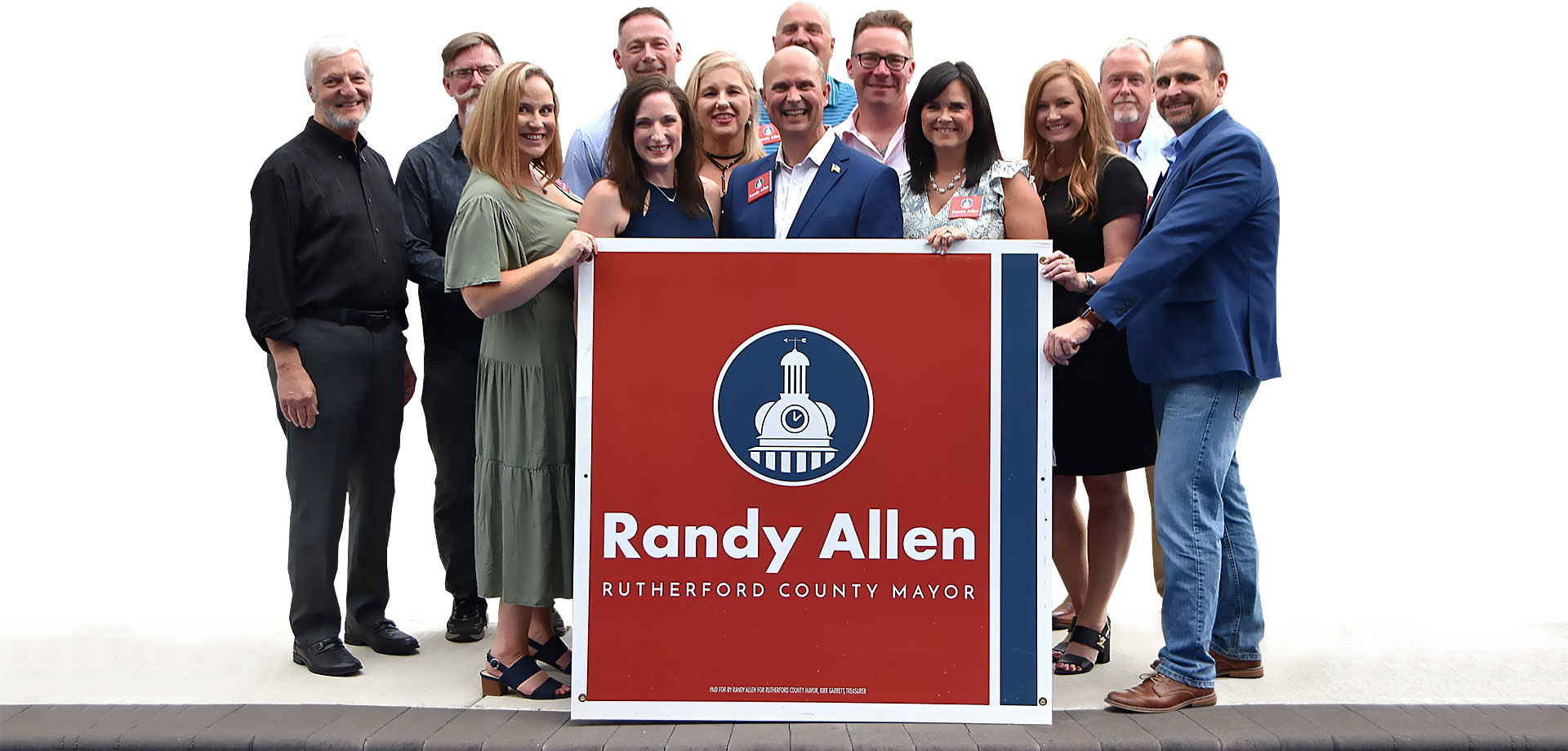 Randy Allen isn’t a career politician, he’s a proven civic leader. A longtime Rutherford County resident, he’s been married to his wife Cynthia for 34 years, built his career locally, and earned his degree from Middle Tennessee State University.